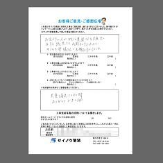 菊川市のA様より、「たいへん満足しています。他の方にもぜひお勧めしたい」とのコメントをいただきました。A様おいそがしいところ、誠にありがとうございました。 …